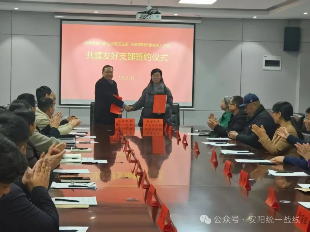 活动现场,双方支部主委分别介绍了各自组织架构、履职成效等基本情况,共同签署《共建友好支部协议书》,标志着两支部合作正式迈入常态化、制度化新阶段。签约后,民革安阳市委会八支部向民革鹤壁市委会示范区支部捐赠书画作品,以笔墨书香为跨区域合作增添文化底蕴。
