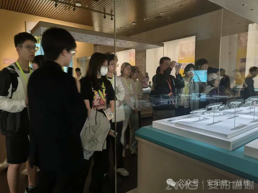 在安阳殷墟博物馆,青铜器上斑驳的铭文、造型古朴的陶器,仿佛在诉说着殷商时期的辉煌历史。香港学生们认真聆听着关于甲骨文发现、青铜器铸造工艺的讲解,不时驻足凝视文物,拿出手机拍照记录。“通过今天的参观学习,我了解到,早在商朝的时候,我们的都城就已经有排水系统,古人的智慧令人佩服。以前只在书本上了解过甲骨文,今天亲眼看到这些刻在龟甲兽骨上的文字,感觉特别震撼。”香港大学生杨汉宇兴奋地分享感受,“这些文物就像一把钥匙,打开了我认识祖国历史文化的新大门。”